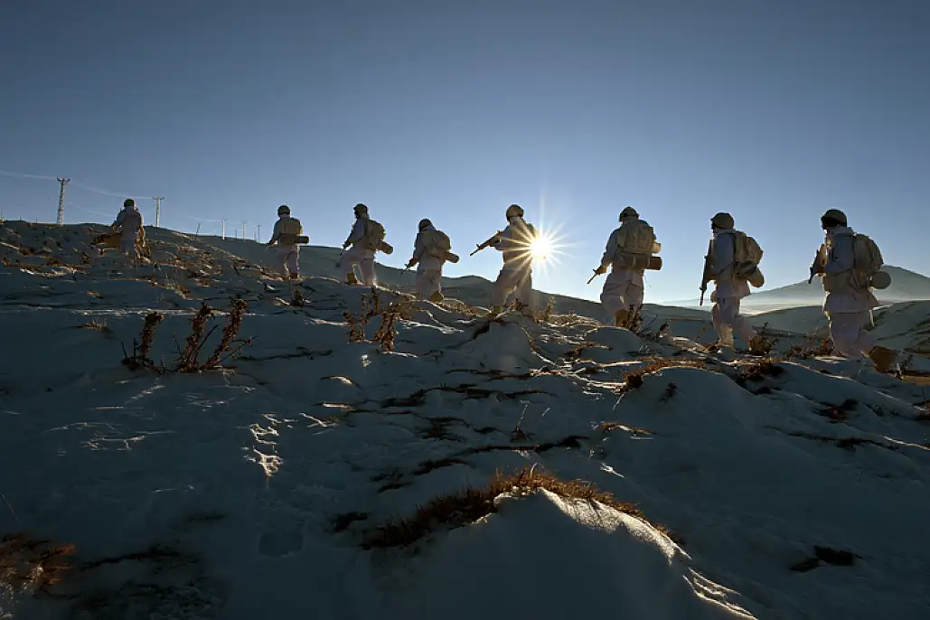 Türkiye-İran sınırında görevli 'Hudut Kartalları' yeni yıla elleri tetikte, gözleri sınır hattında girdi. O anları Anadolu Ajansı Van Foto Muhabiri Özkan Bilgin görüntüledi.