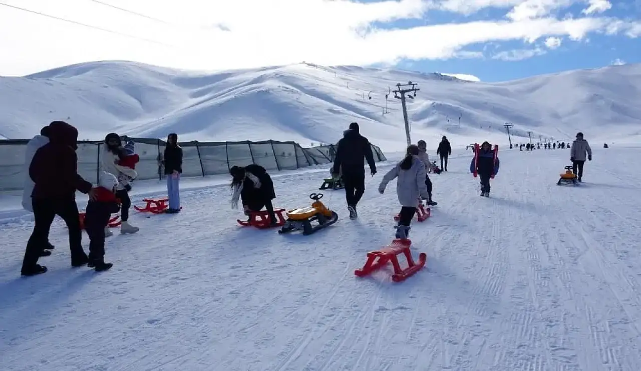 Van'ın Gevaş ilçesinde bulunan Abalı Kayak Merkezi, okulların yarıyıl tatiline girmesiyle birlikte özellikle çocuklar ve ailelerin akınına uğradı.