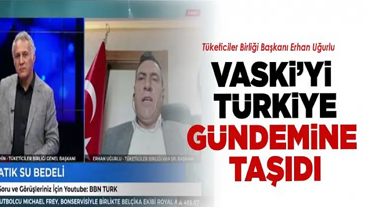 Tüketiciler Birliği Van Şube Başkanı Erhan Uğurlu, BBNTÜRK ekranlarına konuşarak, Van Su ve Kanalizasyon İdaresi Genel Müdürlüğü (VASKİ)'de yaşanan sorun ve sıkıntıları ülke gündemine taşıdı.