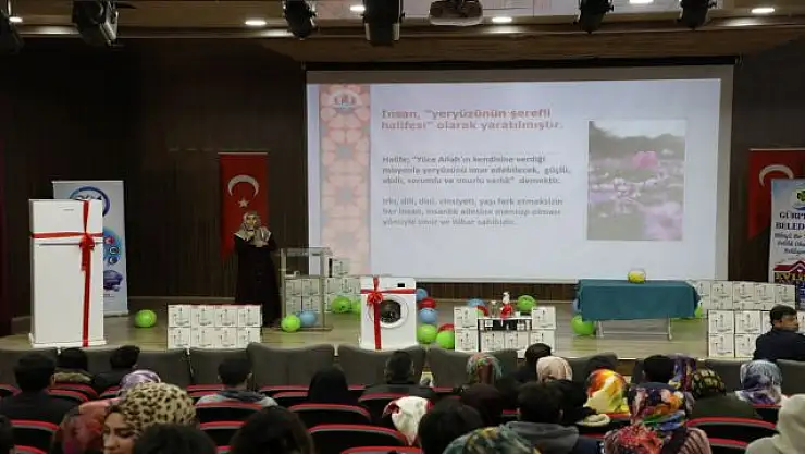 Ücretsiz düzenlenen eğitimlere tam katılım sağlayan çiftlere sertifika, beyaz eşya ve çeşitli hediyeler veriliyor.