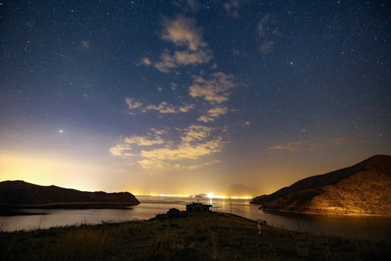 Van'ın Gevaş ilçesinde doğa ve fotoğraf tutkunları, gecenin ilerleyen saatlerinde gökyüzünü gözlemleme ve fotoğraflama imkanı buldu
