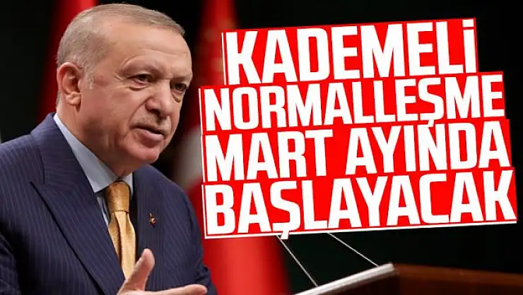 Cumhurbaşkanı Erdoğan, "İllerimizi, Bakanlığımızın belirlediği kriterlere göre 4 gruba ayırarak mart başı itibarıyla kademeli normalleşme sürecini başlatıyoruz" dedi.