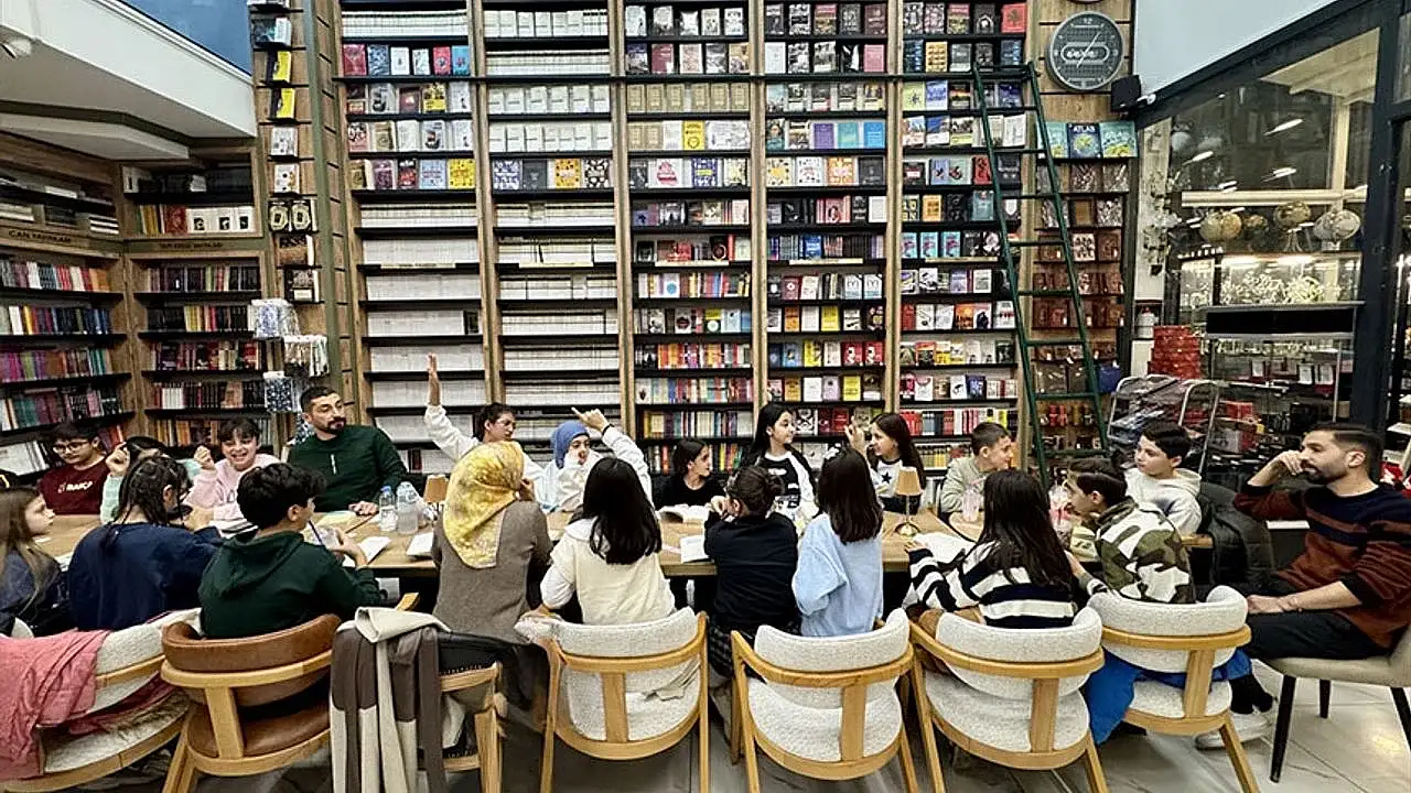 Kentteki bir kitap kafede aileleri eşliğinde öğretmenleriyle bir araya gelen 30 öğrenci, tavsiye edilen kitapları okuyarak derinlemesine analiz ediyor.