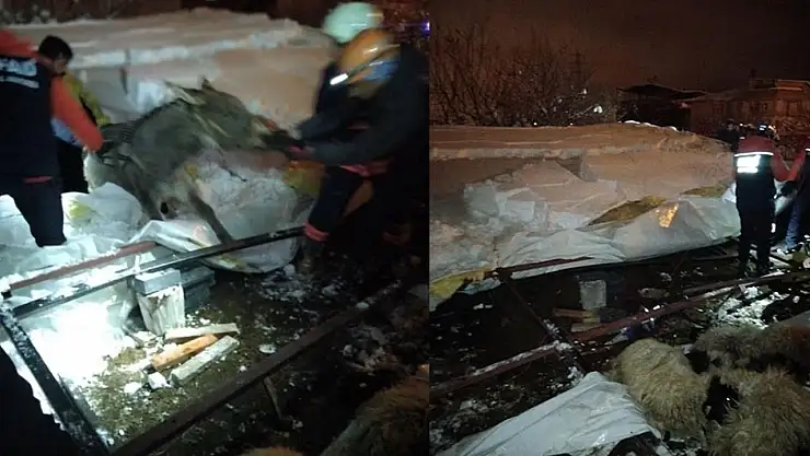 Van'ın Edremit ilçesinde karın ağırlığına dayanamayan ahırın çökmesi sonucu 5 küçükbaş hayvan telef oldu.