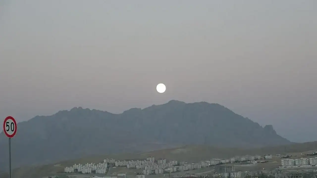 Van'ın sembollerinden biri olan Erek Dağı'nın ihtişamlı silueti üzerinde yükselen dolunay, gökyüzünde adeta bir görsel şölen sundu.