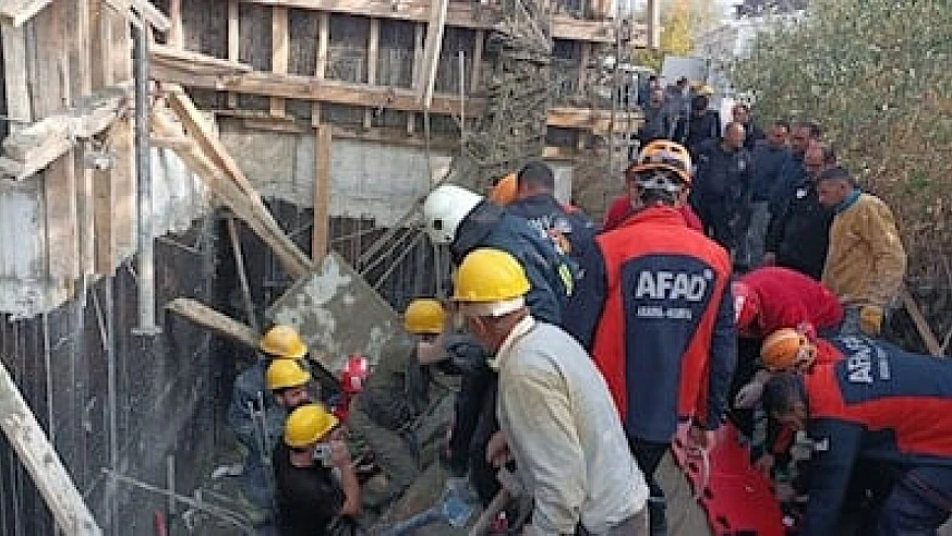 Hatuniye Mahallesi'ndeki inşaatta, beton dökme çalışması sırasında kalıpların patlaması sonucu 2 işçi göçük altına kaldı.