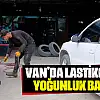 Van'da hizmet veren oto lastikçilerde kış lastiği değişimi yoğunluğu yaşanıyor.