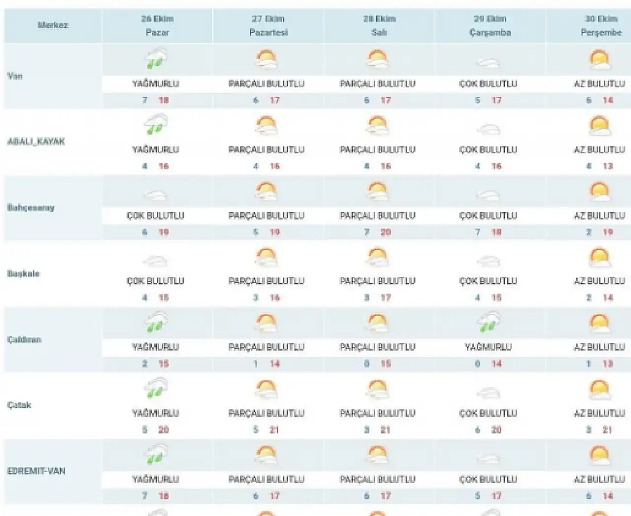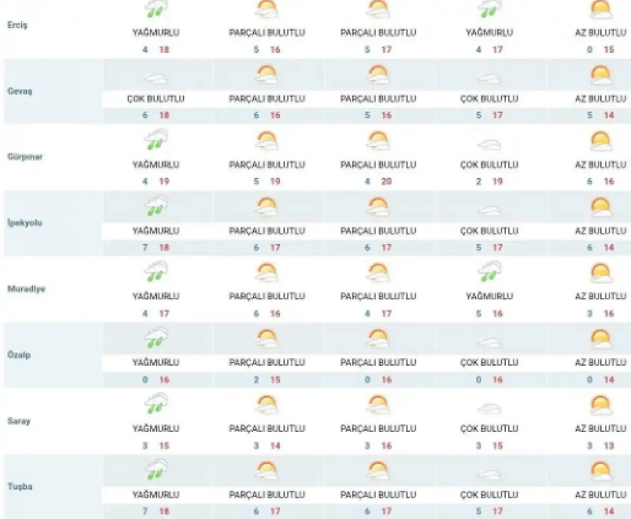 İşte Van’da beklenen 5 günlük hava durumu tahmini: